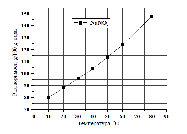 А) Според графиката колко е разтворимостта на NaNO3 в 100 g вода при 35 ◦С?