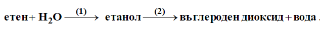 A) Запишете с химични уравнения процесите (1) и (2).