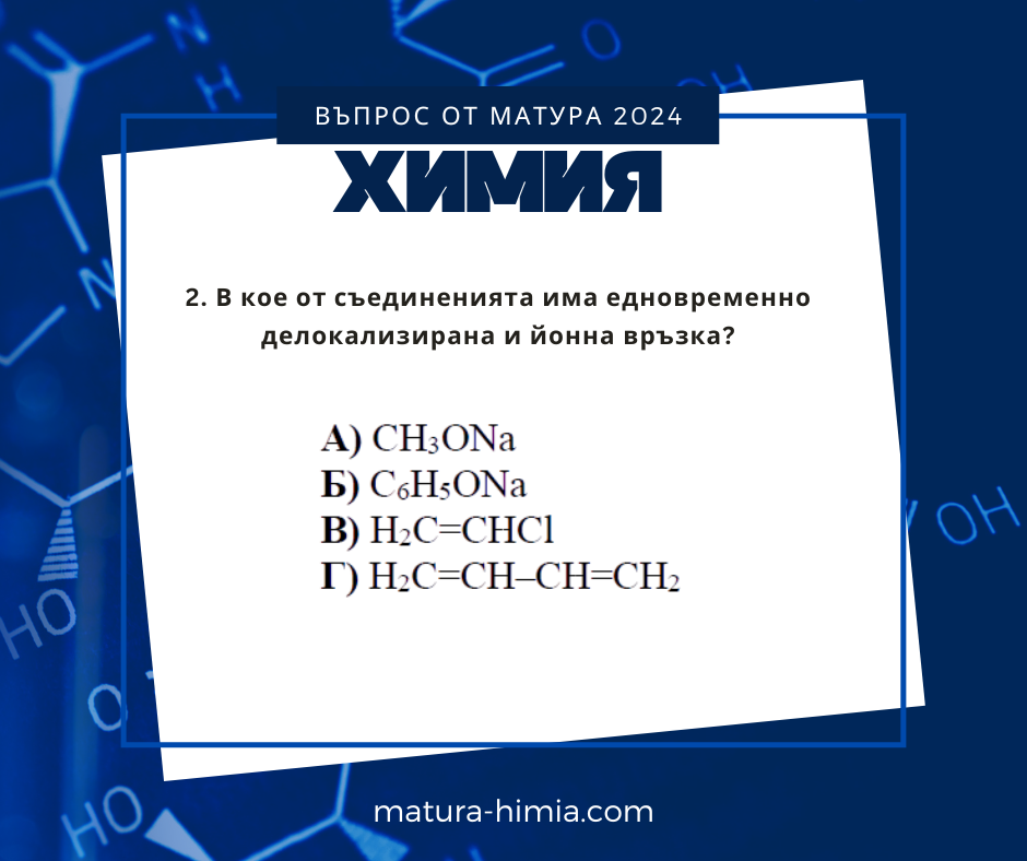 Въпрос от матурата по химия от 20.05.2024 (профилирана подготовка) В кое от съединенията има едновременно...